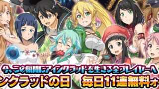 未分類 【SAOIF】毎日11連無料オーダー 2025-11-06 オーダー開催期間毎日11連無料オーダー2025-11-06 17:00:00~2025-11-28 13:59:59オーダー内容11月6日は「アインクラッドの日」!この日を記念して本日から11月28日(金)メンテナンス前まで、「アインクラッ... 2025.11.06 未分類