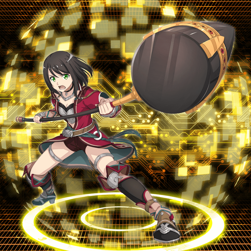[パワーライズ3]攻撃力が800上昇/[噴泉3]スイッチを使用し命中時、20秒間、水属性ダメージが増加(スタック3)のバフ(アクアパイル)を付与 1スタックにつき1%上昇(パートナーが装備時は無効)/[加勢4]同じセット内に装備しているスキルレコードにより効果が変わる。「キリト」のスキルレコードを2枚以上装備時:攻撃力が25%上昇。「キリト」のスキルレコードを3枚以上装備時:斬属性の弱点ダメージが15%上昇。「エギル」のスキルレコードを1枚以上装備時:スイッチで使用したスキルの威力をプラス200%。「エギル」のスキルレコードを2枚以上装備時:打属性の弱点ダメージが15%上昇。「クライン」のスキルレコードを1枚以上装備時:最大HPが10%上昇 ・アクセル効果発動中/[正攻法4]攻撃命中時のヘイト増加値が40%低下する ※進化・限界突破MAX時 | |||