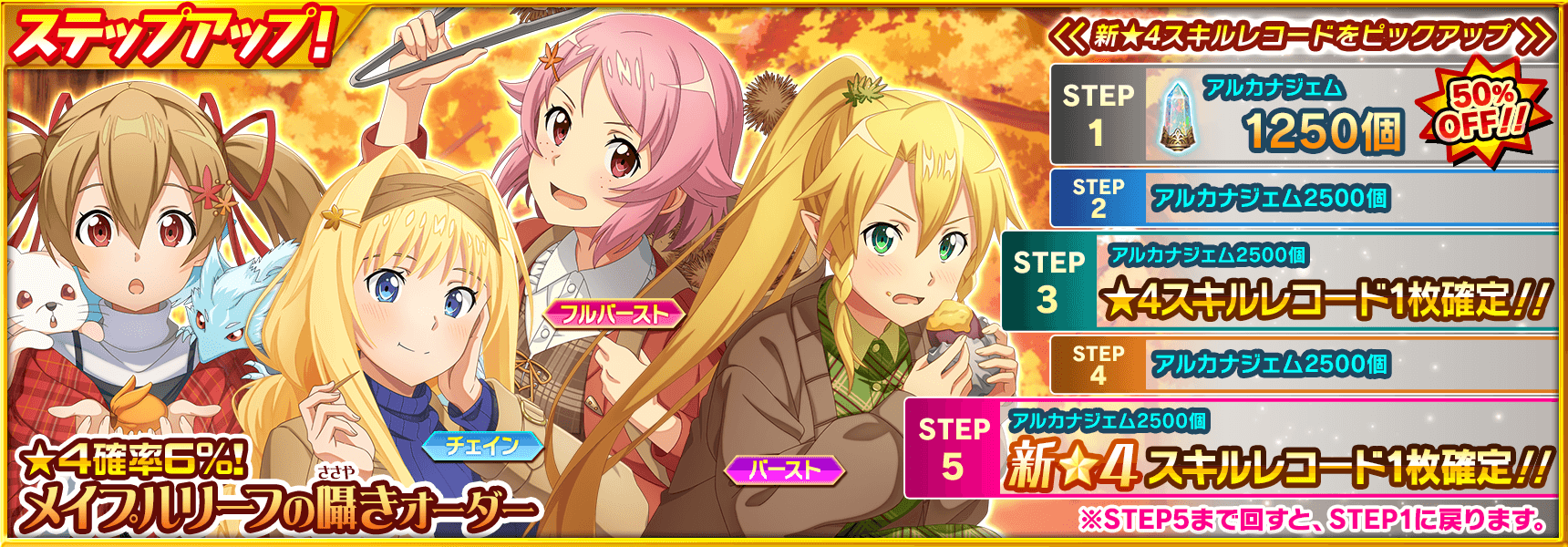 STEP5で新★4スキルレコードが1枚確定で入手できる「メイプルリーフの囁きオーダー」を開催いたします!