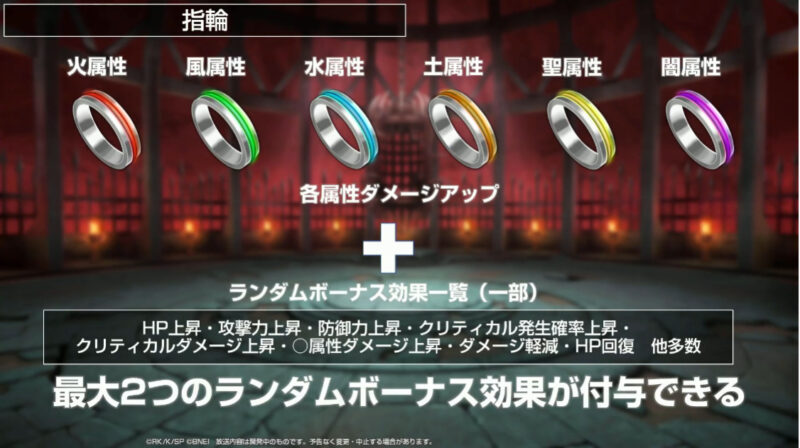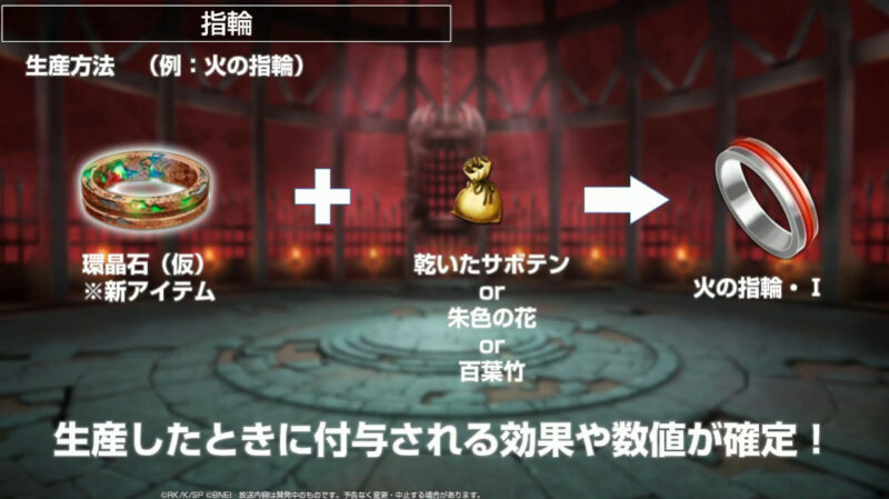 指輪を生産すると《ランダムボーナス効果》が2つ付きます。