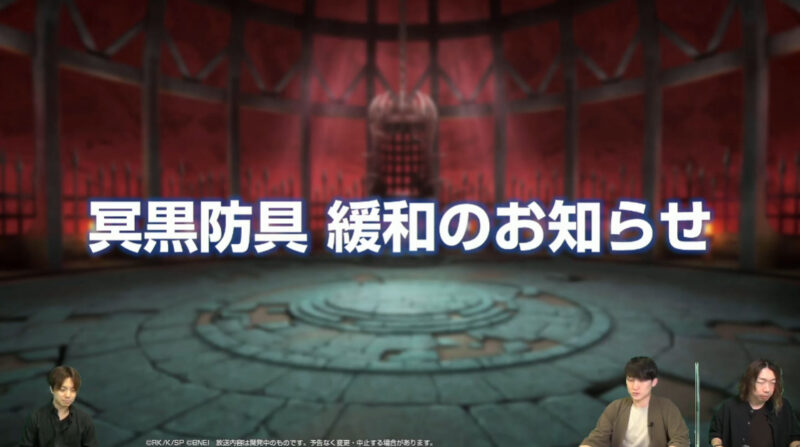 冥黒防具 緩和のお知らせ